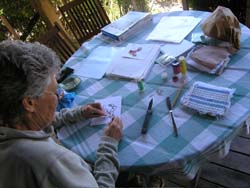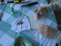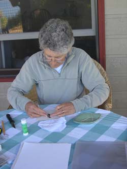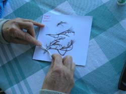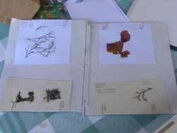 While still in the field it is important to note what part of the intertidal zone you took the algae sample from (i.e. tidal height) and what substrate or other algae it was growing on. It is also important to note what the sample looks like before it is dried. What color is it? What does it feel like? Is it hard, soft, smooth, rough, squishy, silky or velvety? Is it elastic or stiff? Note whether the specimen is radially symmetrical (i.e. does it have similar parts regularly arranged around a central axis?) or growing flat on one plane? Use a hand lens to see finer details and write those down too.